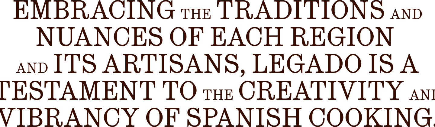 Legado is a contemporary expression of Spain in its entirety, shaped by Chef Nieves Barragán’s journey and two decades of defining restaurants. Conceived as both a personal and cultural legacy, Legado brings the full breadth, energy and spirit of Spanish cuisine to London. Shaping, not only the dishes but the brand itself, Legado's verbal and visual identity moves beyond tradition, championing the rhythm, warmth and creativity found across Spain.